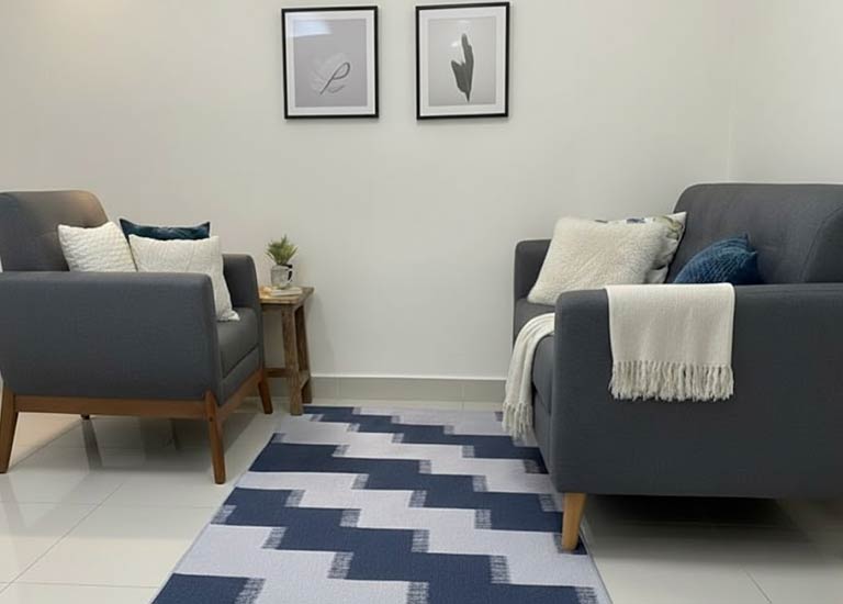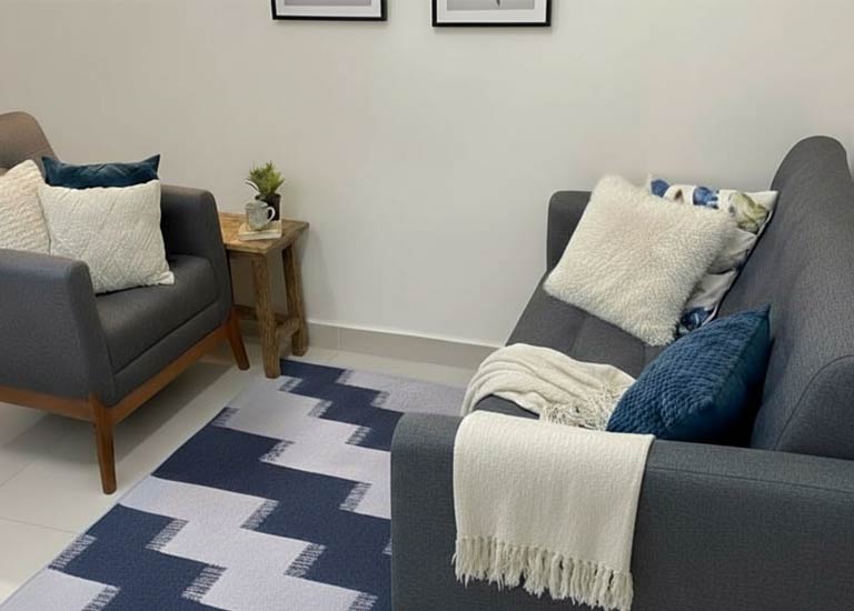 Sala reservada, climatizada e confortável, pensada para que a pessoa fale abertamente com discrição e sem interrupções.